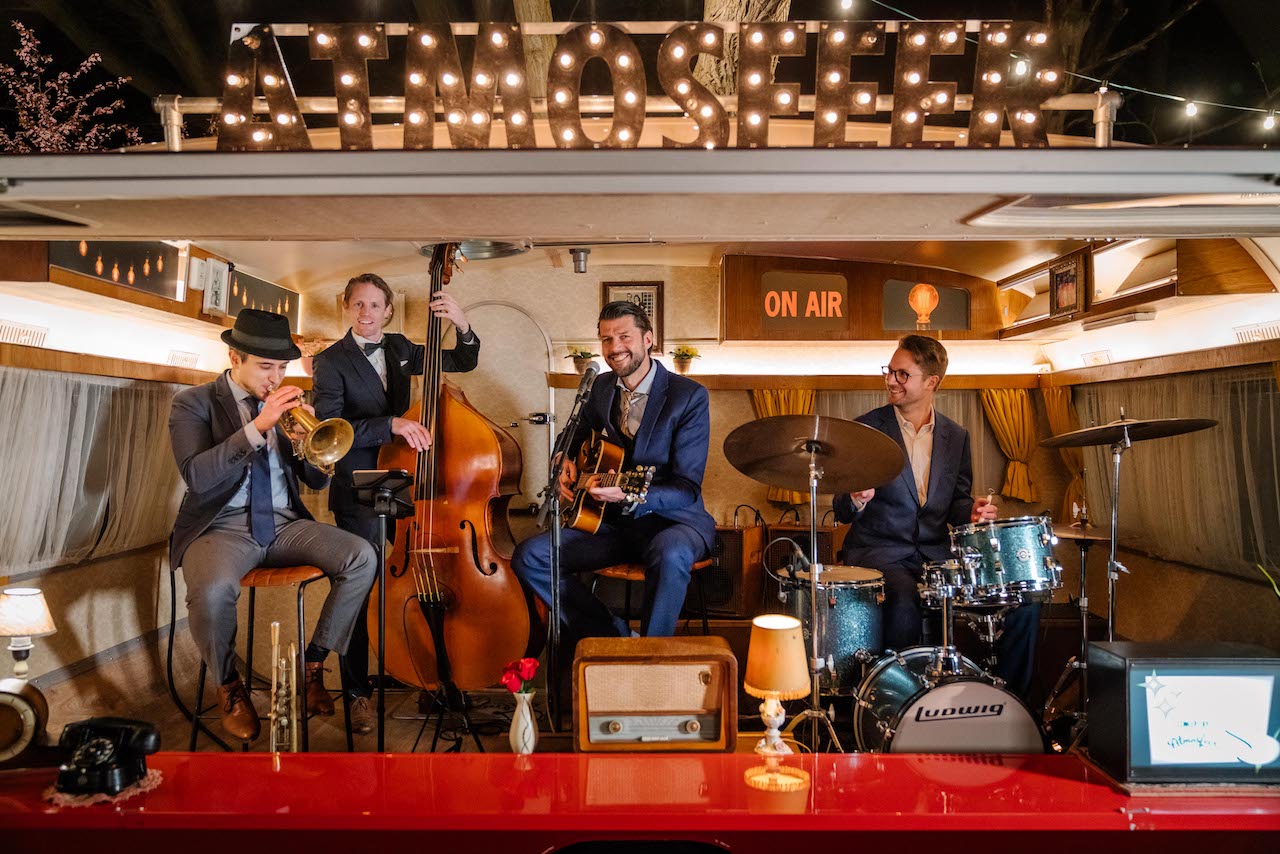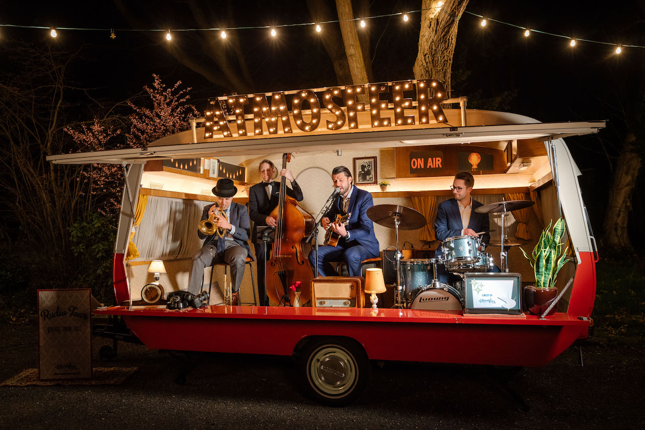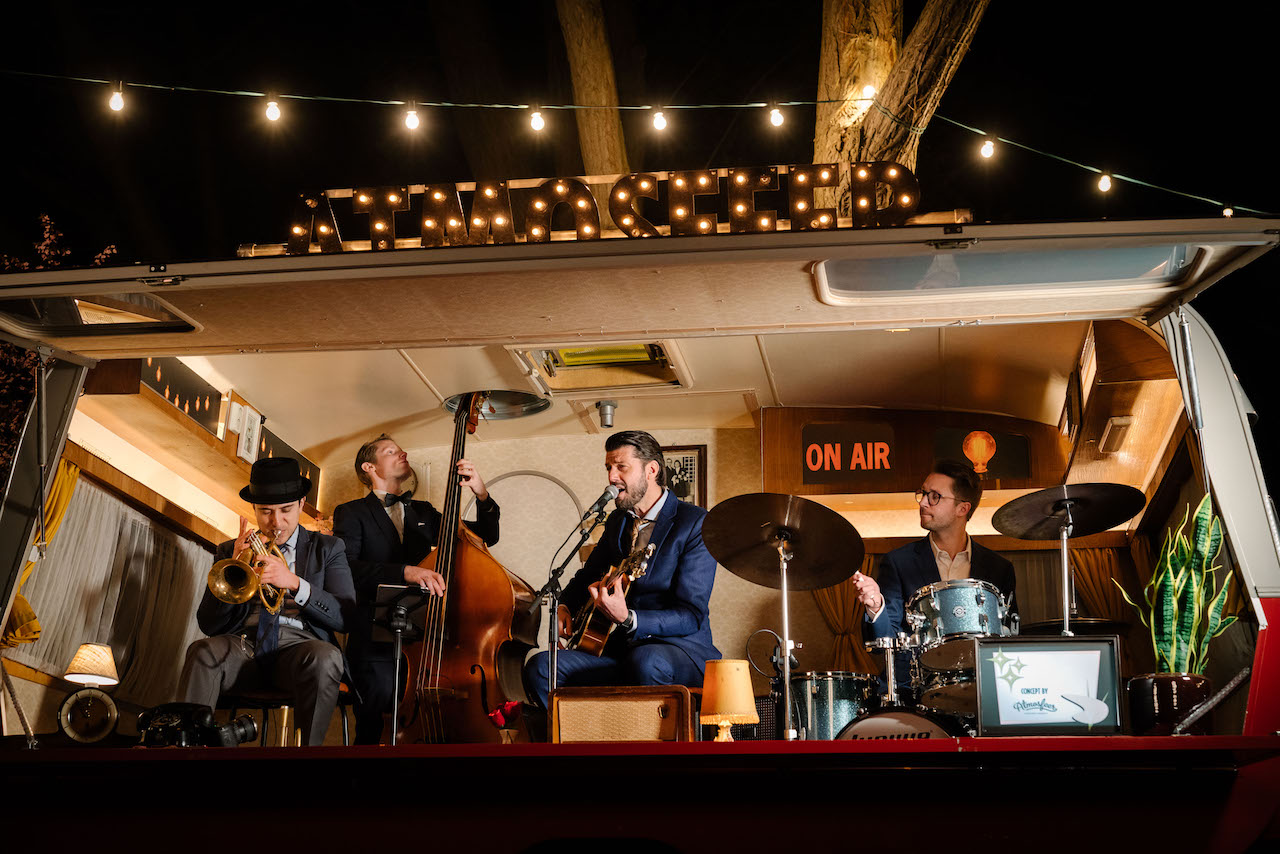 Verras eerst en vooral je gasten, bezoekers, passanten met een live optreden vanuit het unieke mobiel caravan podium! Het podium kan geboekt worden om een live optreden van één of meerdere van onze jazzbands in te doen plaatsvinden. Tot slot is het niet alleen als organisator praktisch, het oogt daarnaast bijzonder sfeervol en zorgt voor een muzikale voltreffer gedurende uw evenement, huwelijk of bedrijfsfeest!
