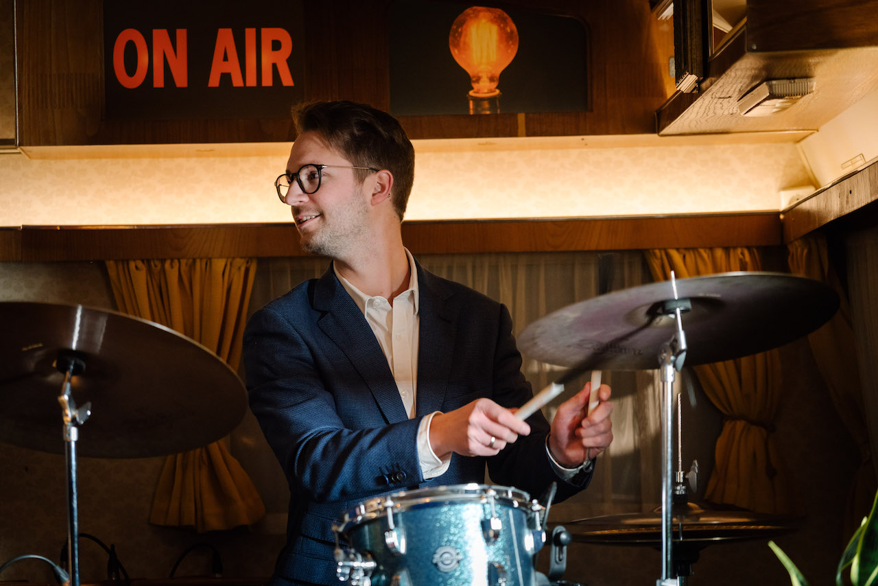 In het hart van uw evenement staat er een charmante caravan die de perfecte setting biedt voor een onvergetelijk optreden. De caravan, omgetoverd tot een podium, straalt met zijn vintage uitstraling, sfeervolle art-deco lampjes en kleurrijke details. Onze stijlvolle live bands, steeds gekleed in retro geïnspireerde outfits, brengen een mix van heerlijk swingende ritmes die de harten van de aanwezigen snel veroveren en onmiddellijk de aandacht van voorbijgangers - die nieuwsgierig toekijken - trekt.