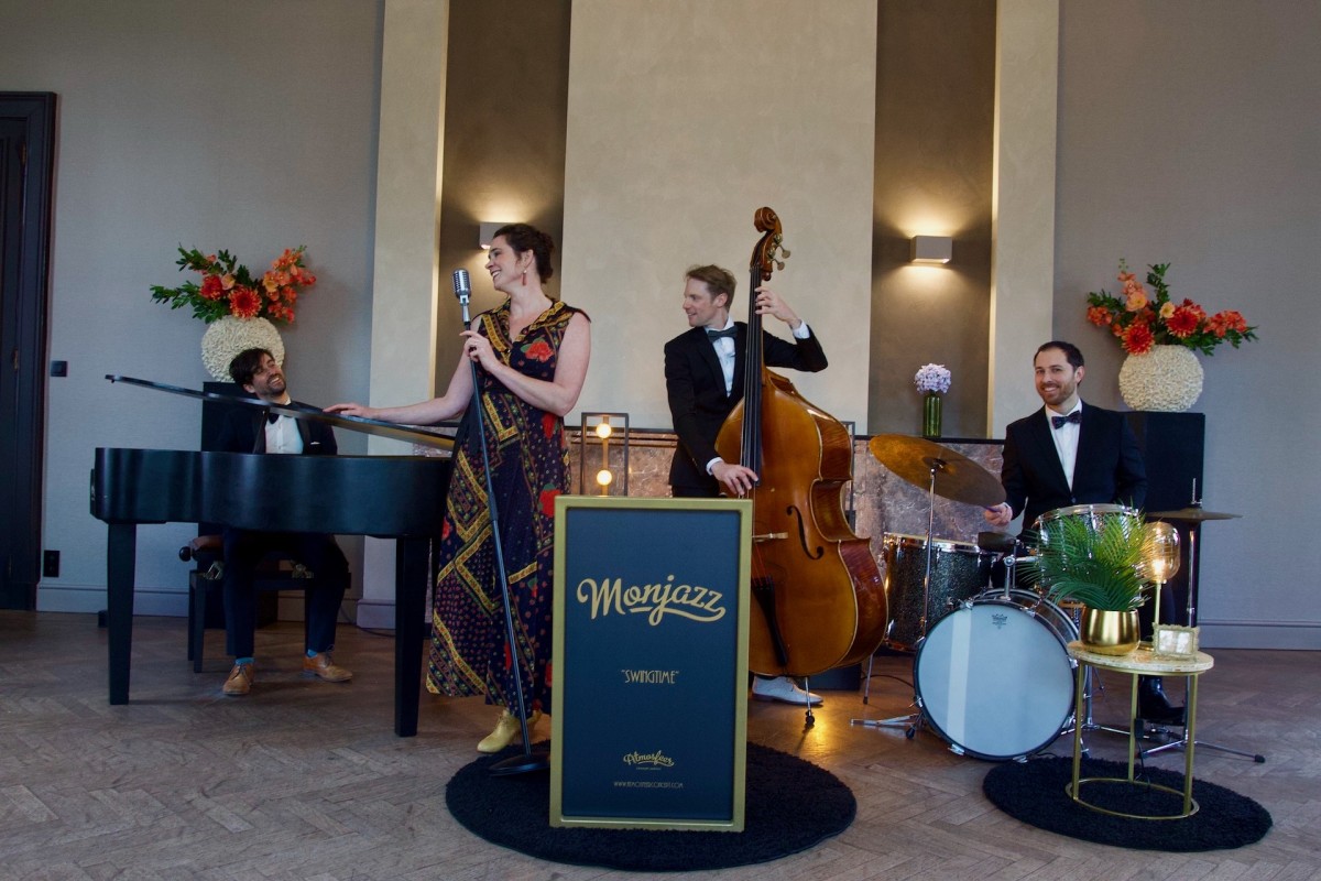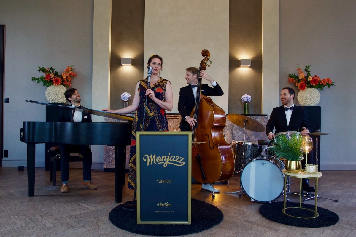 Van atmosferische ballads tot energetische swing, van the golden era tot absolute jazz klassiekers! De live muziek van jazzband ‘Monjazz’ brengt de Amerikaanse jazz scene tot op uw receptie, huwelijk of bedrijfsfeest! Hun uitgebreid repertoire bestaat uit de muzikale nalatenschap van jazzhelden als o.a. Billie Holiday, Ella Fitzgerald, Nat King Cole, Chet Baker,.. Virtuoos instrumentaal en monumentaal met zang!